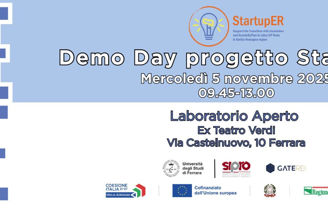 Il Laboratorio Aperto di Ferrara ospita il Demo Day di StartupEr di mercoledì 5 novembre dalle 10.00. Occasione in cui verranno presentati i risultati raggiunti da startup, spin-off e team imprenditoriali che operano nei settori chiave della strategia di specializzazione intelligente dell’Emilia-Romagna, nell’ambito del programma di incubazione e accelerazione loro dedicato.