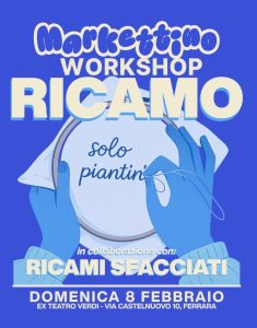 Inoltre, non perdere l’opportunità di partecipare a un nuovo workshop con Ricami Sfacciati, dove potrai imparare le basi del ricamo anche partendo da zero. Un’occasione per scoprire nuovi talenti, incontrare persone e lasciarsi conquistare da oggetti unici, fatti con passione e attenzione ai dettagli.